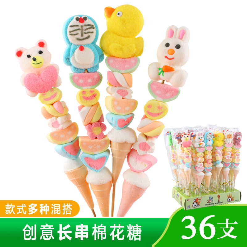 36支装网红卡通可爱造型串烧棉花糖水果味软糖创意帖整箱批散装热门设计联盟服务商