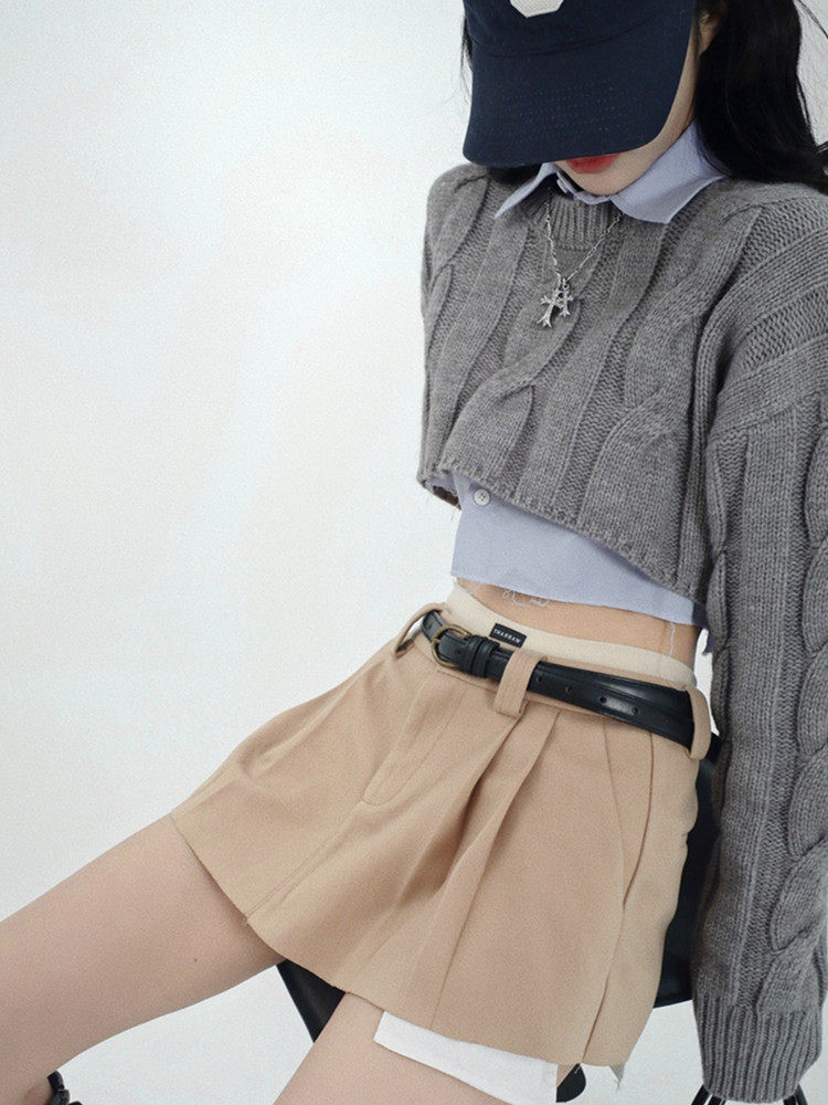 辣妹套装百褶裙半身裙女夏新款设计感叠穿短裙两件套热门设计联盟服务商