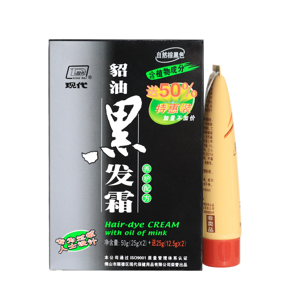 现代貂油黑发霜 专为过敏人士设计 染发剂膏 温和护发 自然棕黑色热门设计联盟服务商