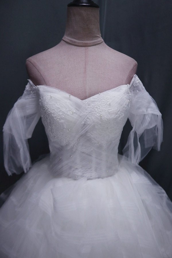 沫家婚纱新款新娘白色显瘦拖尾高档钉珠影楼摄影婚纱演出礼服裙女热门设计联盟服务商
