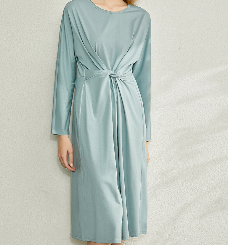 艾家不退换小众长袖设计感连衣裙t恤裙新款休闲长裙子 88-3-485热门设计联盟服务商